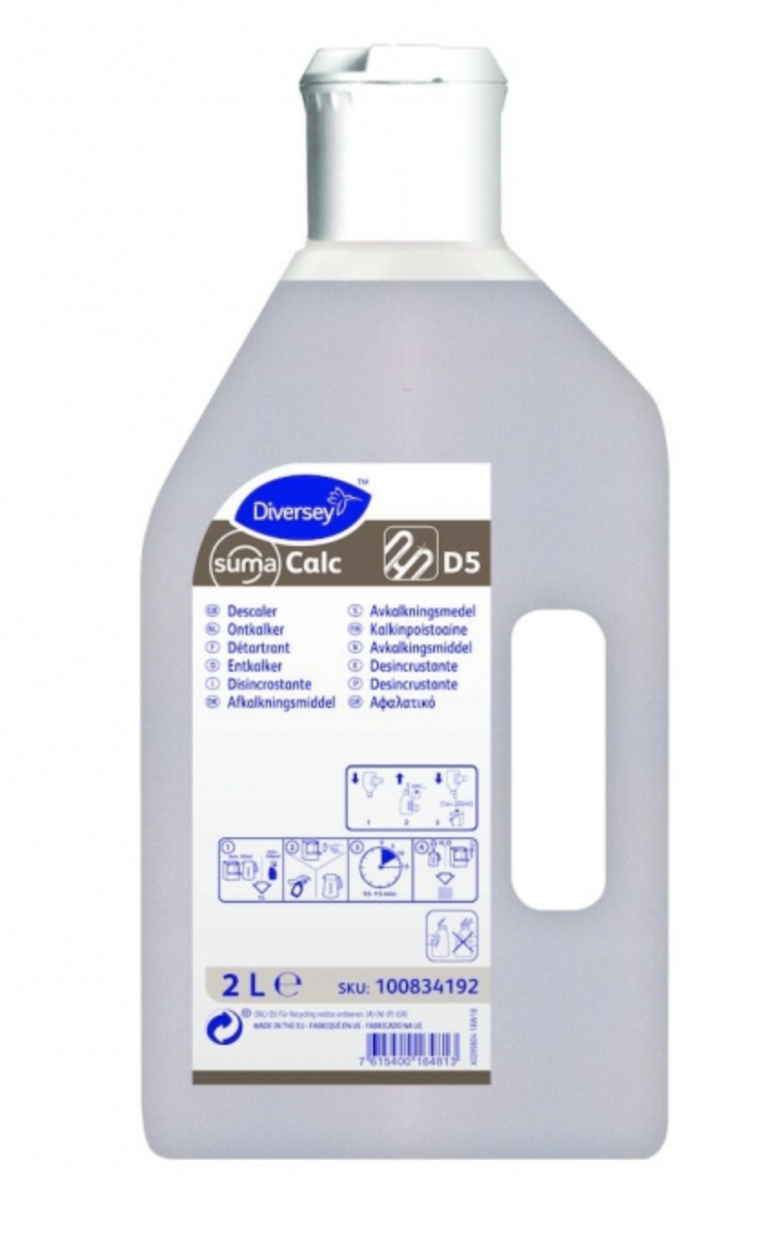 Suma Calc D5 on hapan puhdistus- ja kalkinpoistoaine, joka soveltuu keittiökoneiden ja -välineiden kalkkisaostumien poistoon sekä astianpesukoneiden puhdistukseen.