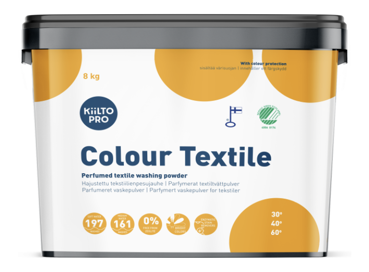 Kiilto Pro Colour Textile sisältää myös valikoituja pesujauheyhdisteitä, jotka varmistavat optimaalisen pesutehon värillisille tekstiileille. Se huuhtoutuu helposti tekstiileistä, jättäen ne raikkaiksi ilman pesuainejäämiä.