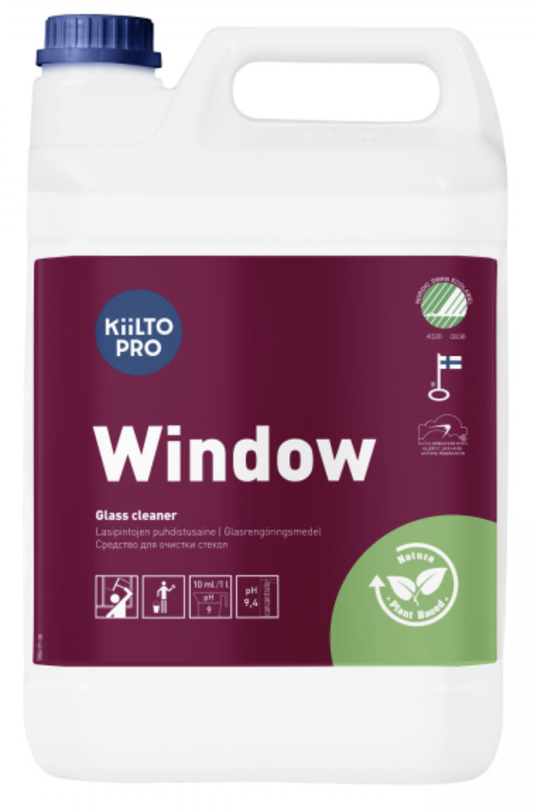 Kiilto Window on puhdistusaine lasi-, peili- ja metallipinnoille. Se poistaa tehokkaasti lian ja kuivuu nopeasti jättäen puhdistetun pinnan kiiltäväksi.